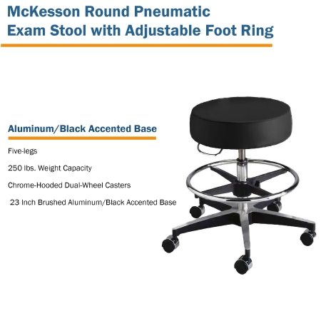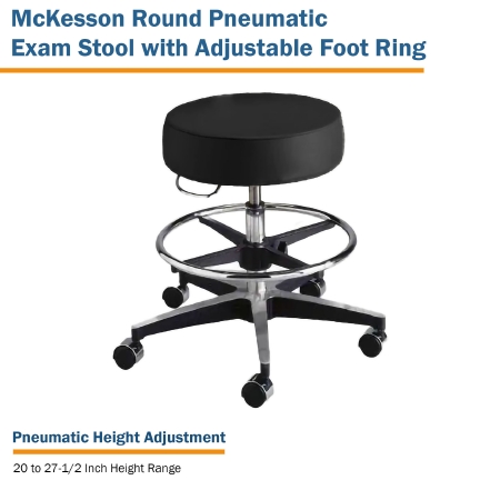 Exam Stool McKesson Backless Pneumatic Height Adjustment 5 Casters Black