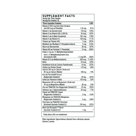 Prenatal Dietary Supplement THORNEĀ® Basic Prenatal Vitamin A (Palmitate) 600 mcg Strength Capsule 90 per Bottle
