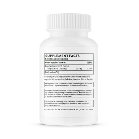 Dietary Supplement THORNE® Iron Bisglycinate Iron (as Ferrochel® Ferrous Bisglycinate Chelate) 25 mg Strength Capsule 60 per Bottle