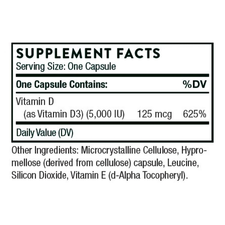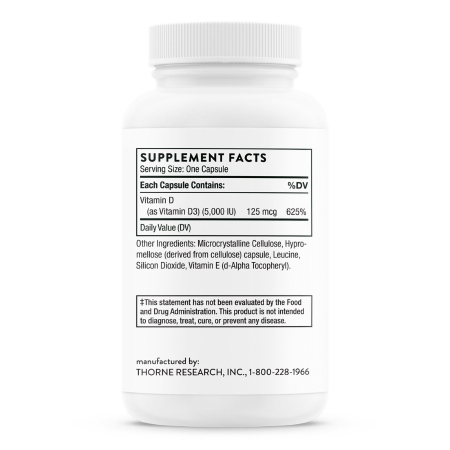 Vitamin Supplement THORNEĀ® D-5 000 Vitamin D3 125 mcg Strength Capsule 60 per Bottle