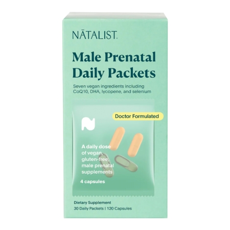 Prenatal Vitamin Supplement NATALIST® Male Prenatal Daily Packets Vitamin C / Vitamin D / Vitamin E / Selenium / Coenzyme Q10 / Lycopene / DHA 500 mg – 10 mcg – 268 mg – 100 mcg – 200 mg – 8 mg – 450 mg Strength Capsule 30 per Box