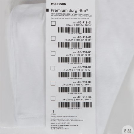 Post-Surgical Bra McKesson White 40 to 42 InchProduct Specification Sheet