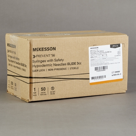 Safety Hypodermic Syringe with Needle McKesson PreventĀ® SG 3 mL 1 Inch 25 Gauge Sliding Safety Needle Thin Wall