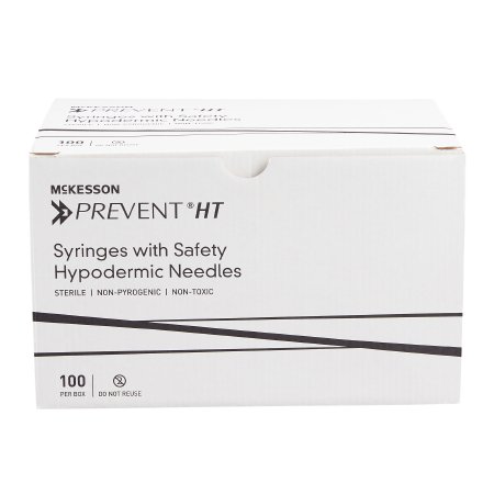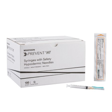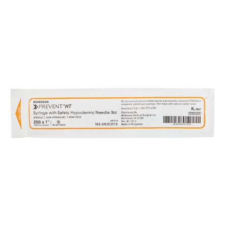 Safety Hypodermic Syringe with Needle McKesson PreventĀ® HT 3 mL 1 Inch 25 Gauge Hinged Safety Needle Ultra Thin Wall