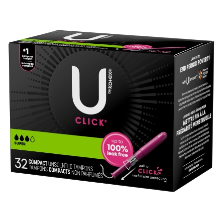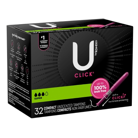 Tampon U by Kotex® Click® Super Absorbency Plastic Applicator Individually Wrapped