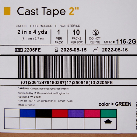 Cast Tape McKesson 2 Inch X 12 Foot Fiberglass GreenProduct Specification Sheet