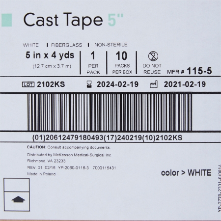 Cast Tape McKesson 5 Inch X 12 Foot Fiberglass White