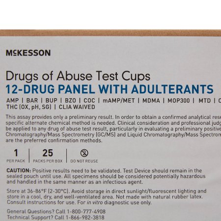 Drugs of Abuse Test Kit McKesson AMP BAR BUP BZO COC mAMP/MET MDMA MOP300 MTD OXY PCP THC (OX pH SG) 25 Tests CLIA Waived