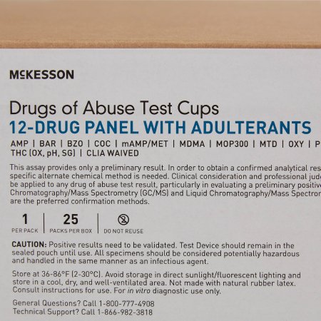 Drugs of Abuse Test Kit McKesson AMP BAR BZO COC mAMP/MET MDMA MOP300 MTD OXY PCP TCA THC (OX pH SG) 25 Tests CLIA Waived