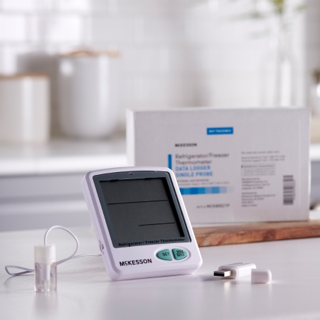 Datalogging Refrigerator / Freezer Thermometer with Alarm McKesson Fahrenheit / Celsius -50° to +158°F (-50° to +70°C) Flip-out Stand Battery Operated