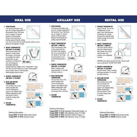 Disposable Oral Thermometer Tempa·DOT™ 99 to 104 °F Color Dots Display