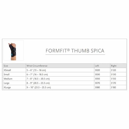 Thumb Spica Ossur® Formfit® Large D-Ring / Hook and Loop Strap Closure Right Hand Black