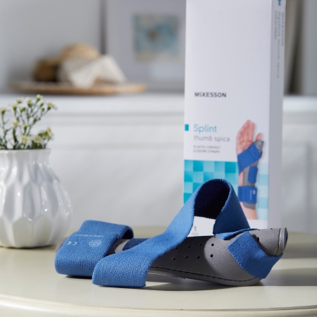 Wrist Brace with Thumb Spica McKesson Preformed Right Hand Blue / Gray Large / X-LargeProduct Specification Sheet