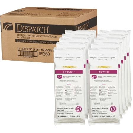 Dispatch® with Bleach Surface Disinfectant Cleaner Premoistened Manual Pull Wipe 60 Count Soft Pack Fruity Floral Bleach Scent NonSterile