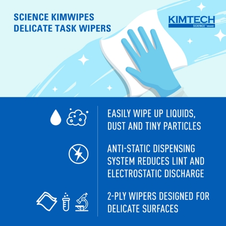 Delicate Task Wipe Kimtech Science Kimwipes Light Duty White NonSterile 2 Ply Tissue 14-7/10 X 16-3/5 Inch Disposable