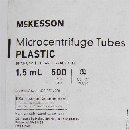 McKesson Microcentrifuge Tube Plain 1.5 mL Snap Cap Polypropylene Tube