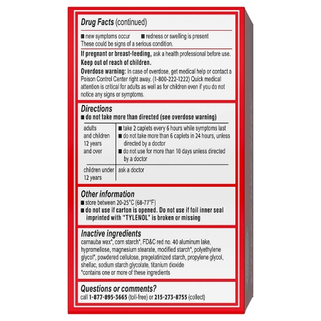 Pain Relief Tylenol® 500 mg Strength Acetaminophen Caplet 100 per Bottle