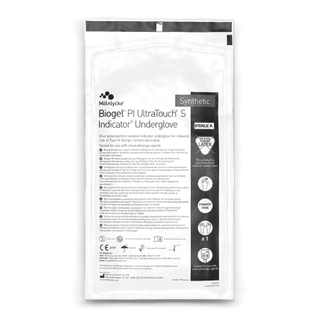 Surgical Underglove Biogel® PI UltraTouch® S Indicator® Size 6.5 Sterile Polyisoprene Standard Cuff Length Smooth Blue Chemo Tested