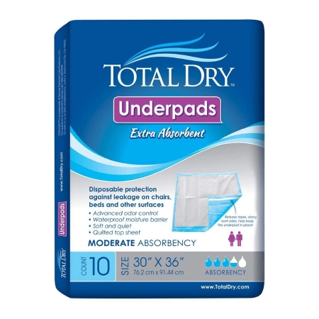 Disposable Underpad TotalDry™ 30 X 36 Inch Fluff / Polymer Heavy Absorbency