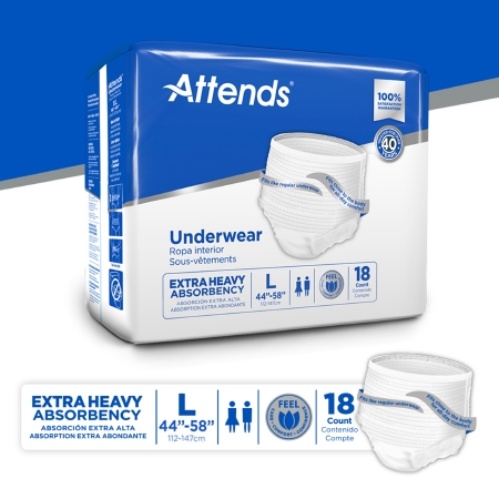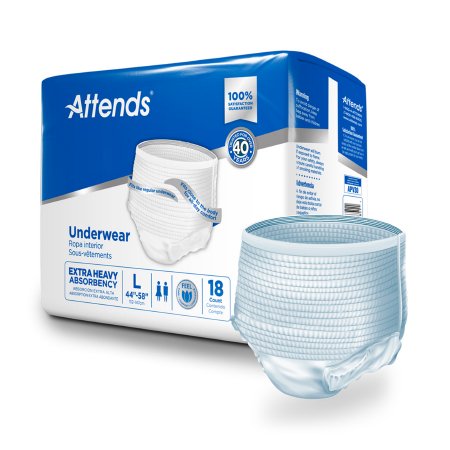 Unisex Adult Absorbent Underwear AttendsĀ® Care Pull On with Tear Away Seams Large Disposable Heavy Absorbency