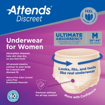 Female Adult Absorbent Underwear AttendsĀ® Discreet Pull On with Tear Away Seams Medium Disposable Heavy Absorbency