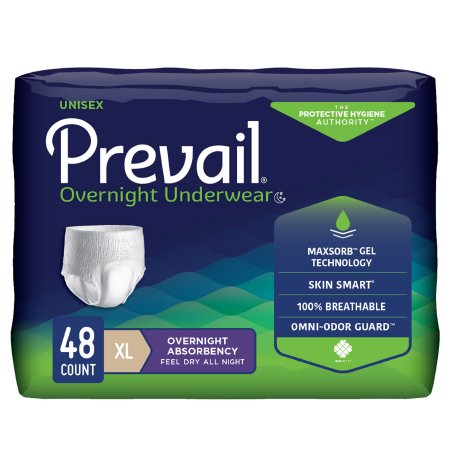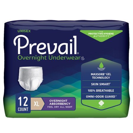 Unisex Adult Absorbent Underwear PrevailĀ® Overnight Pull On with Tear Away Seams X-Large Disposable Heavy Absorbency