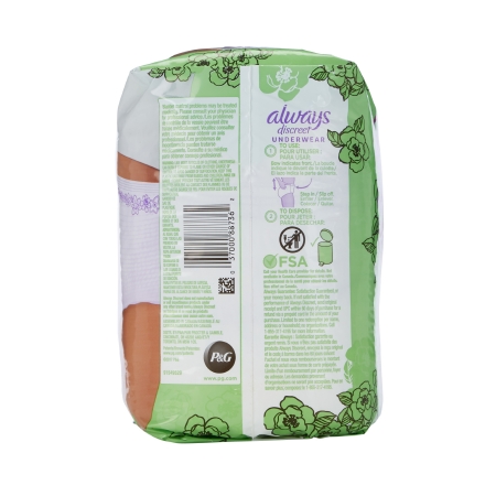 Female Adult Absorbent Underwear Always® Discreet Pull On with Tear Away Seams Small / Medium Disposable Heavy Absorbency