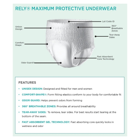 UNDERWEAR RELY MAXIMUM PROT LG (20/BG 4BG/CS)