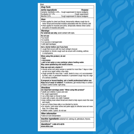 Chest Rub Vicks® VapoRub® 4.8% – 1.2% – 2.6% Strength Ointment 3.53 oz.Product Specification Sheet