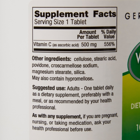 Vitamin C Supplement Geri-CareĀ® Ascorbic Acid 500 mg Strength Tablet 1 000 per Bottle
