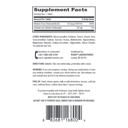 Vitamin Supplement Vitamin D3 25 mcg Strength Tablet 90 per Bottle