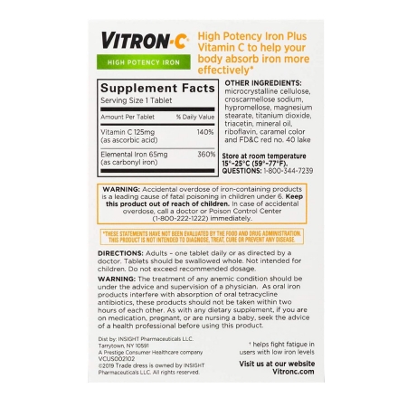 Multivitamin Supplement Vitron-C® Ascorbic Acid / Iron 125 mg – 65 mg Strength Tablet 60 per Bottle