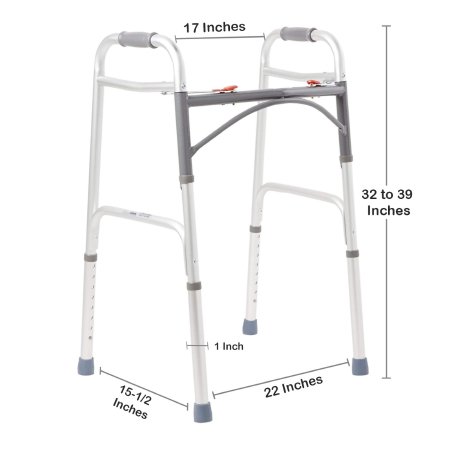 Dual Release Folding Walker Adjustable Height McKesson Aluminum Frame 350 lbs. Weight Capacity 32 to 39 Inch Height