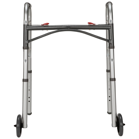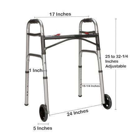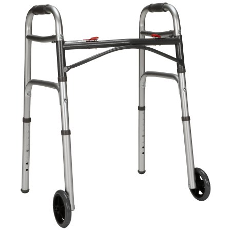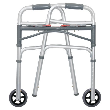 Dual Release Folding Walker with Wheels Adjustable Height McKesson Aluminum Frame 350 lbs. Weight Capacity 25 to 32-1/4 Inch Height