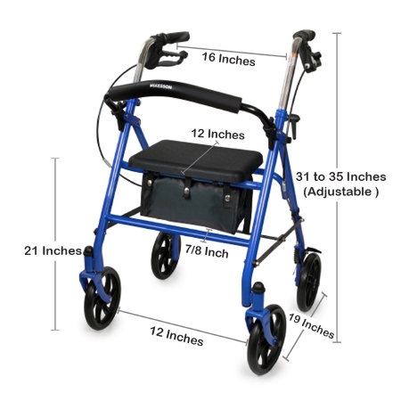4 Wheel Rollator McKesson Blue Adjustable Height / Folding Steel FrameProduct Specification Sheet