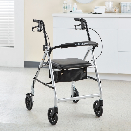 WALKER ROLLATOR LTWT FOLDING ALUM W/6″ WHLS SLVR 300LB
