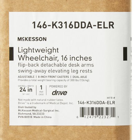 Lightweight Wheelchair McKesson Dual Axle Desk Length Arm Swing-Away Elevating Legrest Black Upholstery 16 Inch Seat Width Adult 300 lbs. Weight Capacity