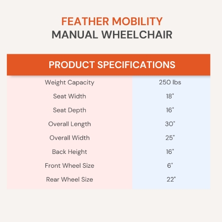 Lightweight Wheelchair Feather Full Length Arm Swing-Away Footrest Gray / Orange Upholstery 18 Inch Seat Width Adult 250 lbs. Weight Capacity