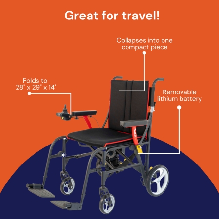 WHEELCHAIR PORTABLE POWER W/RT HAND JOYSTICK 250LB CAP