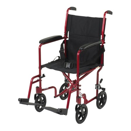Transport Chair McKesson 19 Inch Seat Width Full Length Arm Swing-Away Footrest Aluminum Frame with Red Finish
