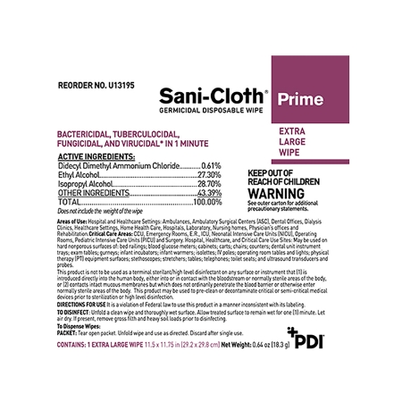 WIPE GERMICIDAL SANI-CLOTH PRIME XLG (50BX 3BX/CS)