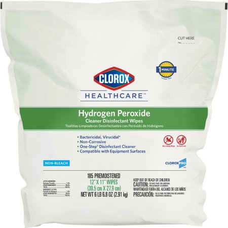 Clorox Healthcare® Surface Disinfectant Cleaner Premoistened Hydrogen Peroxide Based Manual Pull Wipe 185 Count Pouch Unscented NonSterile