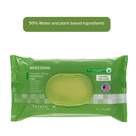 Flushable Personal Wipe McKesson Soft Pack Unscented 48 Count
