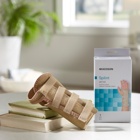 Wrist Brace McKesson Low Profile / Contoured / Wraparound Aluminum / Cotton / Elastic Right Hand Beige Large