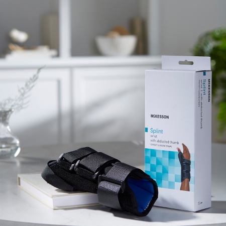 Wrist Brace with Abducted Thumb McKesson Aluminum / Foam / Spandex / Plastic Right Hand Black Small