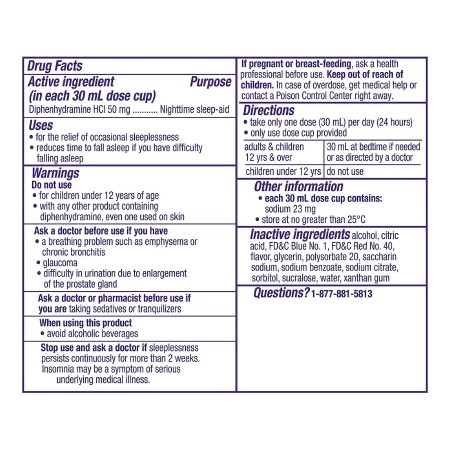 Sleep Aid ZzzQuil™ 6 oz. Liquid 50 mg / 30 mL StrengthProduct Specification Sheet